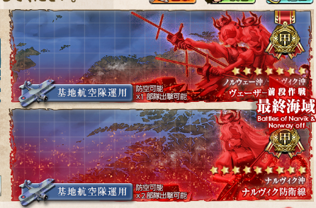 前段全域に言えることだけど、とにかく欧州偵察機2積みですべてを一任するが故に、装備の質がかなり求められる海域だったと思う。俺もプリンツ2隻拾ってAr196改を3機持ってなかったらもっと苦労してた気がする。