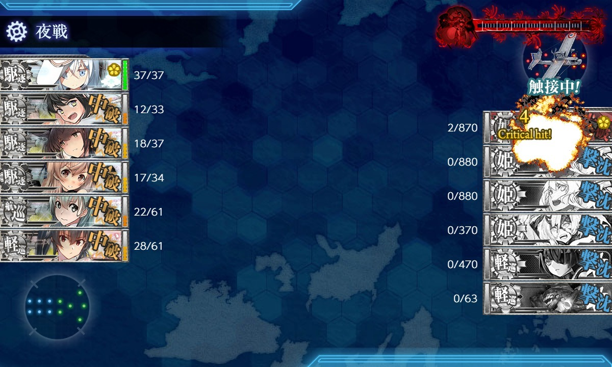 何故か5隻編成で許してもらった記憶があるけど、対地装備ちゃんとそろってないと8000ある集積地+Sボート小鬼群を抜いてS取るのは相当難易度高い。
